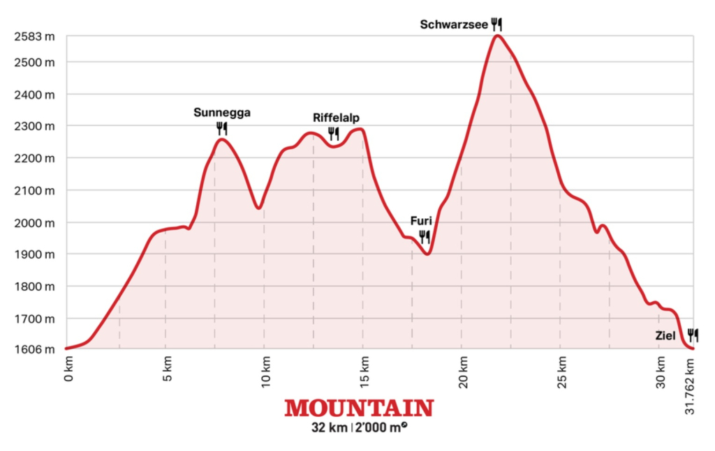A futásom teljesen jól ment, végig temposan nyomtam. A Schwarzsee csúcstámadástól, azért tartottam egy kicsit, ami 3,5 km 700 m emelkedéssel néha 32% emelkedő, de azt lenyomtam 1:15 alatt. Ami azért nálam már fasza. Egyedül az ucsó 10 km volt nehezebb mentálisan, mert persze az már ereszkedés, de valójában folyamatos le fel munka egy völgyben a célig. Gyakorlatilag az ucsó 5 km látod a célt.
